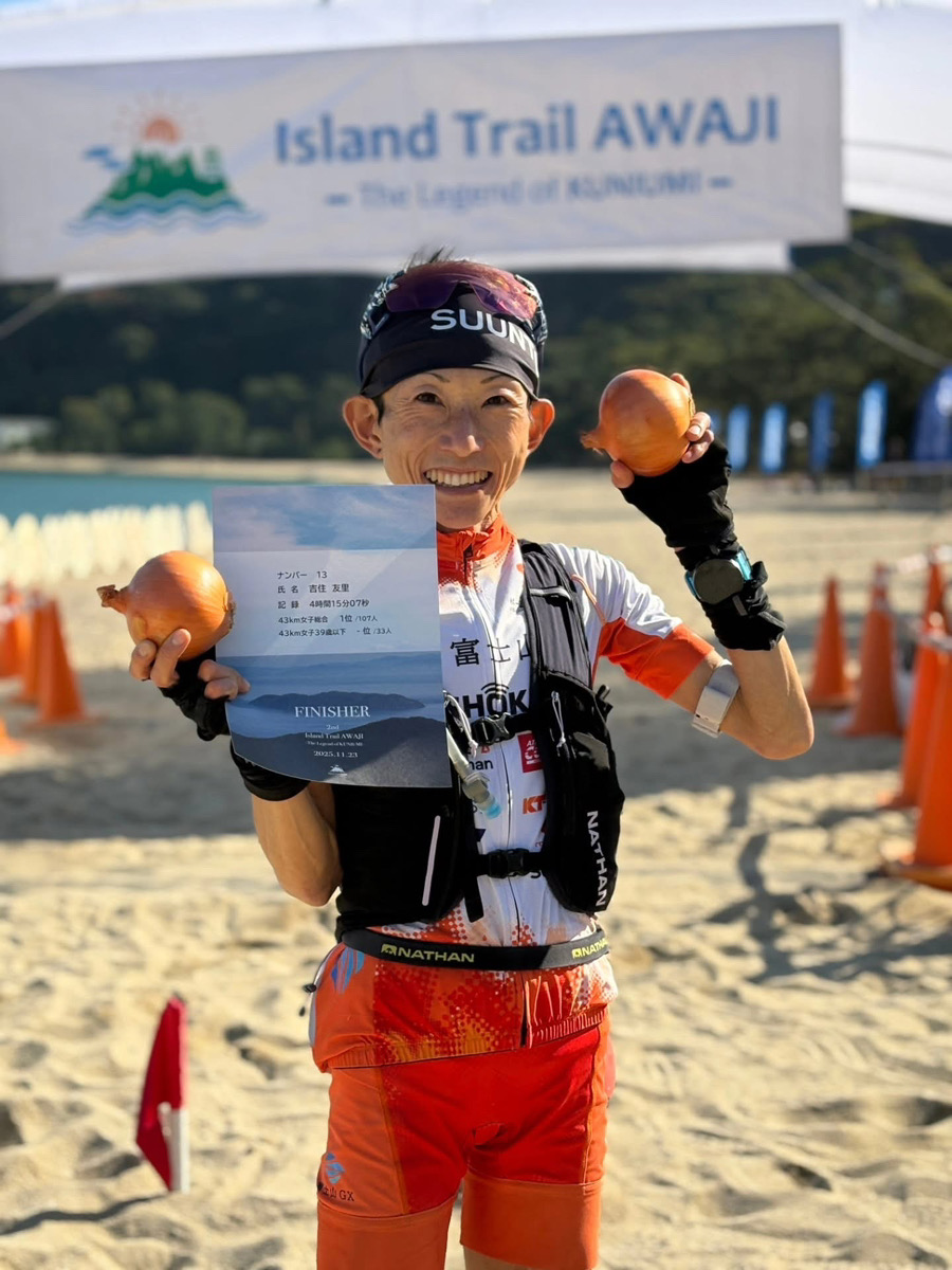 2025年11月23日(日)に、兵庫県淡路島で開催された第2回Island Trail Awajiに出場し、43km、累積標高差2,000mのコースを、4時間15分07秒という大会記録のタイムで完走。女子総合優勝、男女総合でも8位という見事な結果でした!👏👏おめでとうございます!